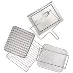 1 bandeja, 1 rejilla, 1 bandeja recogemigas, 1 kit para espiedo, 1 agarradera para espiedo, 1 canasta para freír |