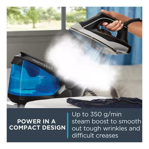 Central de vapor Compact Steam Pro Ahorra tiempo al planchar Capacidad de 1.7 L Estación con plancha y contenedor de agua extraíble Rowenta VR8324U1 Azul