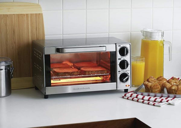 Hamilton Beach 31401 Horno Tostador Eléctrico de 4 Rebanadas (12 Litros), Acero Inoxidable